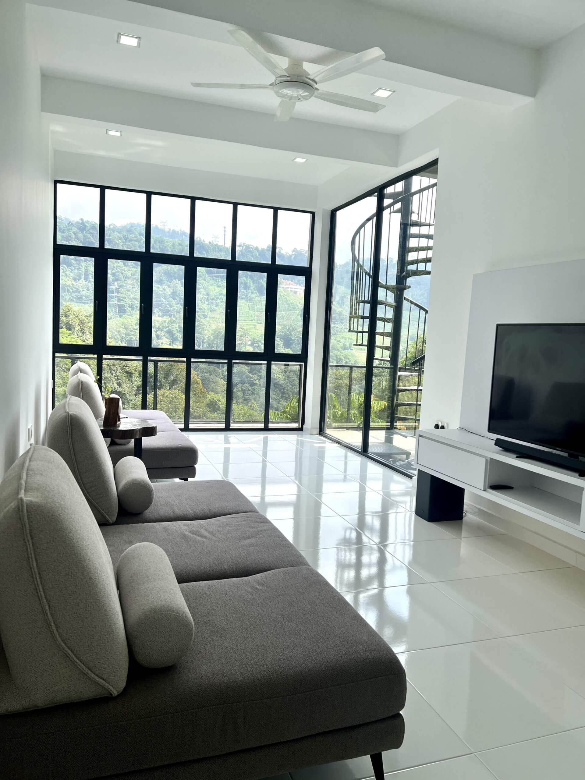 Casa California House is a serene minimalist villa perched on a quiet hillside in Genting Sempah, offering panoramic views of rolling green landscapes and a refreshing cool climate.